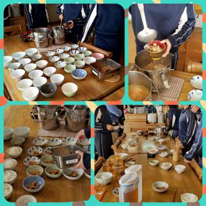 紅葉ハイキングが雨天中止になりました。その食材を利用した食事が寮食として提供されました。