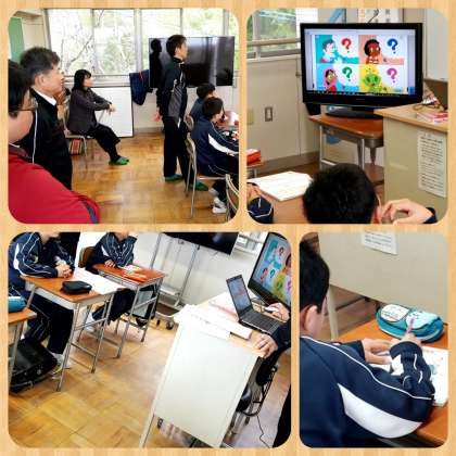小学部の教室で小学校外国語活動授業参観として、指導部教育活動支援担当の方に来ていただきました。