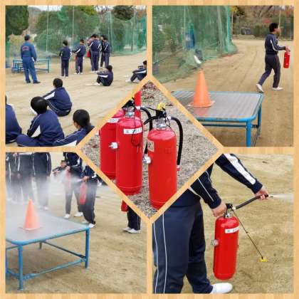 消火訓練では、委員会の生徒が代表となって取り組みました。代表のひとりは、みんなの前では恥ずかしがり「火事だ」という声を大きくだせない姿が印象的でした。