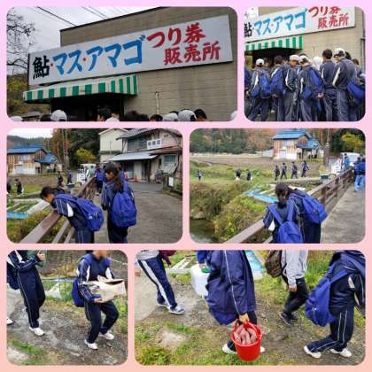 「キャー、気持ち悪い」と言いながら服で魚を掴み針を抜きます。