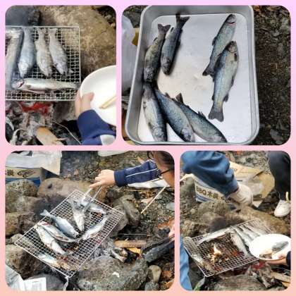 たくさん釣れました。中には体長30cm以上のものもあります。釣った直後に腸を取り除き炭焼きにします。