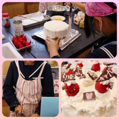 今回の3年女子は、『タンドリーチキンとケーキ』を作りました。人気のおかずですね。また、近年女子の仕事にパティシエを選ぶケースもありますね。