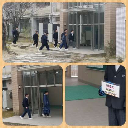 朝の登校を委員会生徒が、「おはようございます」と迎えます。