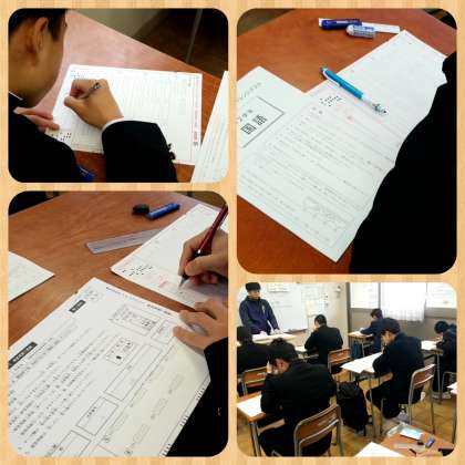 朝の学活で改めて学級担任から実施上の注意等があり、解答用紙が配付されます。そこから1限の国語の解答用紙だけを切り離します。