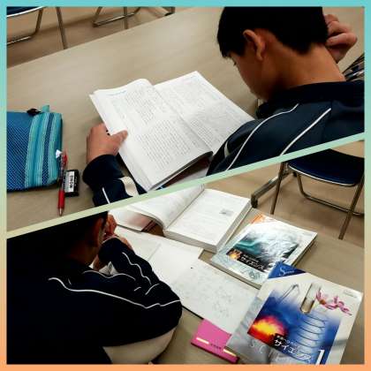 作業やクラブ活動を終えた17時30分から18時30分の時間帯に、事前に希望した生徒が集まります。やる気のある生徒のみ集まり、その雰囲気の中で学力向上に努めます。
