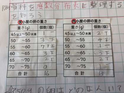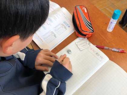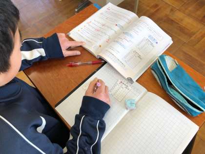 授業終わりには、算数ノートに出来上がった表を貼り、後で見返しやすいノート作りにも取り組んでいました。