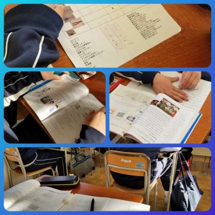 三年生は今週水曜日から学年末テストです。教室ではテスト範囲の学習を行っています。