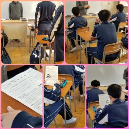 三年生では、明日の公立特別選抜等について、進路だより『コンパス』を配付し注意等がありました。