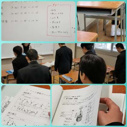 1限は保健体育です。今日半日、集中し全力で取り組んでください。