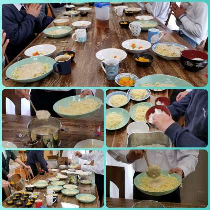 今日は三年生が受験でしたが、この寮では一人が午前中に帰寮し、もう一人が受験のため不在。いつもとそれほど変わることのない昼食タイムでした。