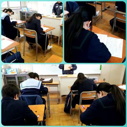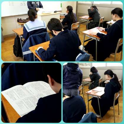 予鈴で担当教員から冒頭にテストの受け方についての話があり、それに伴い先ほどまでとはうってかわって、テストモードに入ります。繰り返される諸注意ですが、切り替えがきちんとでき、話を聞いていました。