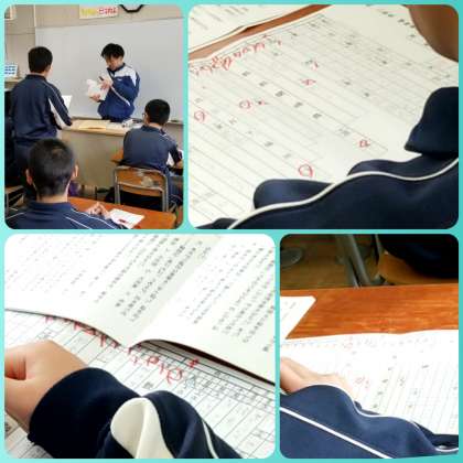 国語科教員から指示が入ります。「机上には問題プリントと赤ペンのみ出しなさい」