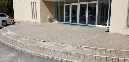 体育館のアプローチ(出入口)のタイルの張替え工事を実施します。