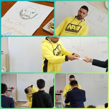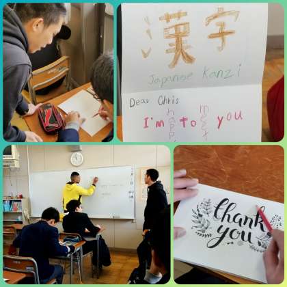 個性的な似顔絵を描いたり、日本語で『漢字』と書いたりと、それぞれが気持ちを綴っていました。