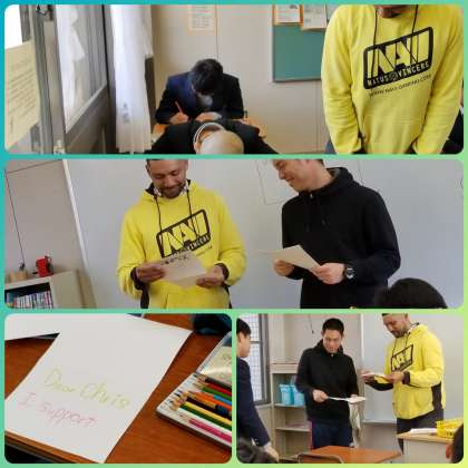 最後にクリスさんから生徒へ、高校へ進学してからの活躍を願うメッセージがあり、