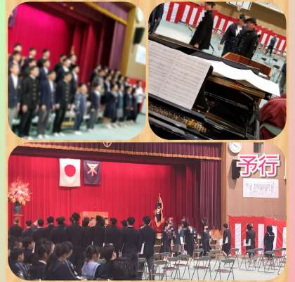 大きな体育館に敷き詰められた椅子、壁全体を紅白幕が覆います。予行とは言え、その空気は本番並みです。