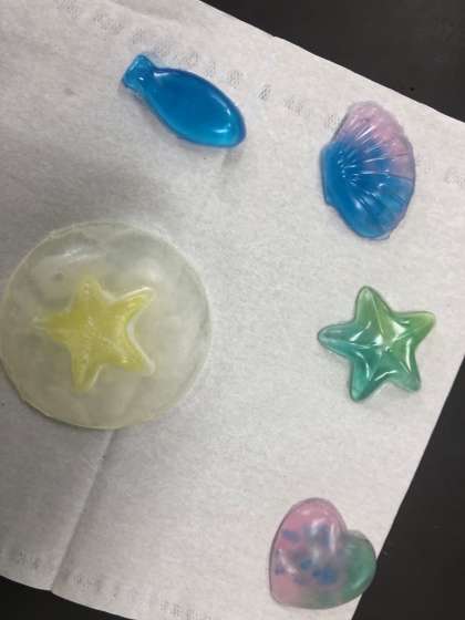 初めはうまく作れませんでしたが、コツをつかむと色や形にこだわることもでき、きれいな石鹸ができました。