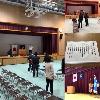 明日の入学式・始業式に向けて、午前中に教職員が準備に取り掛かっていました。