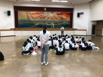 図書館でお話を聞いたり、本を選んだりした後、区民センターの方に来ました。区民センターはどのように利用されているのか教えてもらいました。