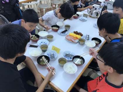 朝ごはんをしっかり食べて、この後オリエンテーリングに備えます!