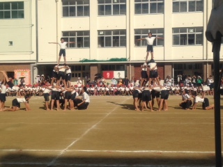 児童の皆さんは、とてもよくがんばりました。結果は赤組の優勝でした。また、どの学年の演技もすばらしいものでした。