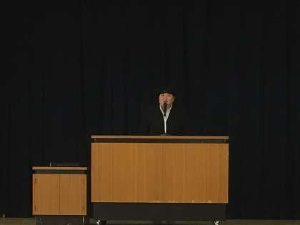 今日の児童朝会では,まず,実習生の紹介がありました。実習期間中に,たくさんのことを吸収してもらいたいと思います。