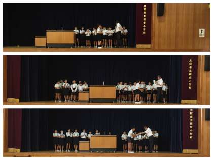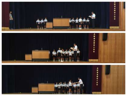 次は,夏休みのプール開放の皆勤賞の表彰式でした。なんと98名もの児童が表彰されました。来年の夏も,頑張ってほしいと思います。