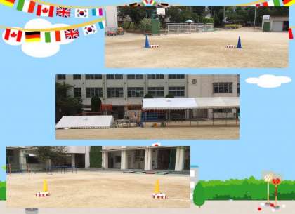 今日は,運動場に入退場門の土台が設置されました。運動会まで約1週間。運動場の準備もできてきています。