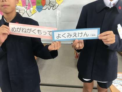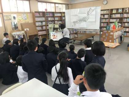 10月17日(木)、2時間目は1組、3時間目は2組が図書室にて、補助員さんによる絵本「だじゃれ日本一周」の読み聞かせによるアニマシオンを体験しました。
