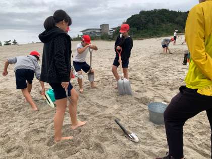 土をほる子、水をくみにいく子、分担して取り組んでいます。