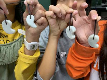 世界に一つだけの修学旅行の思い出が詰まった勾玉。どの子も素敵なものが作れました。
