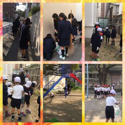 桜宮小学校もこのクリーンUP作戦に参加し,清掃活動を11日と12日の2日間に分けて行います。今日は,東野田公園や校舎の周囲などを清掃しました。落ち葉がほとんどですが,中には,空き缶やお菓子の包み紙なども…。でも,子どもたちのがんばりで,とてもきれいになりました。
