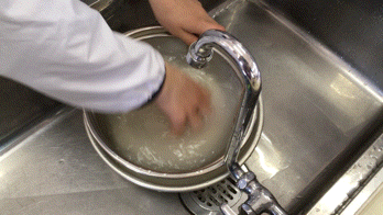 今日は,5年生が調理実習をしていました。メニューは,ご飯とお味噌汁です。