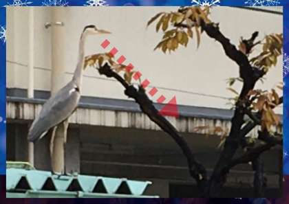 今日のお昼前,屋根に1羽の大きな鳥が…。サギでしょうか?ひょうたん池をじっと見つめているような気がします。その視線の先には,何がいるのでしょうか?