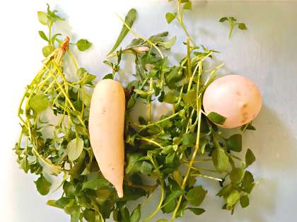 上の画像はスーパーで購入した七草を撮影したものですが,種類を見分けられますか?すずなとすずしろは,すぐにわかるのですが,他のは難しいですね…