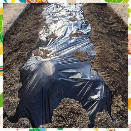 学習園を覗いてみると,以前整地された畑に,マルチシートが張られていました。どうやら,何かの種を植えているようです。いったい何が育つのでしょうか。