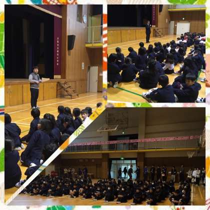 今日は,休み時間中に不審者が校舎内に侵入したという想定で避難訓練を行いました。イカのおすし(行かない・乗らない・大声を出す・すぐ逃げる・知らせる)について,校長先生と一緒に再度確認しました。
