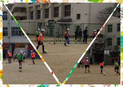 今日は,5年生が運動場でサッカーをしていました。寒い中でしたが,子どもたちは元気いっぱいでした。