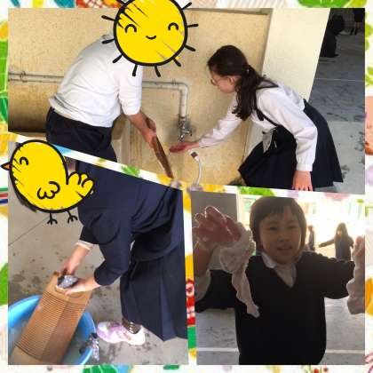 今日は,3年生が洗濯板を使って靴下を洗っていました。泥などの洗濯機では落ちにくい汚れも,洗濯板でゴシゴシこすると,とても白くなっていました。洗濯機と手洗い,それぞれの良さを感じ取ることができたのではないでしょうか。
