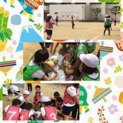 今日は,5年生の研究授業でした。「ポジションを上手く使ってシュートを決めよう」というめあてのもと,サッカーの学習に取り組みました。話し合いの時間だけでなく,練習中やゲーム中にも,お互いに声をかけ合いながら,活動する姿にとても感心しました。
