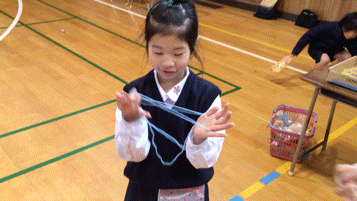 今回教えてもらったことを,今度は1年生が桜宮幼稚園の子どもたちに教える予定です。昔遊び名人になれるように,今日から特訓です!