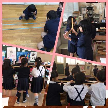 今日は,2年生の学習を参観してきました。30cmものさしを組み合わせて,両手を広げた長さを測っているところでした。