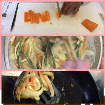 今日は,5年生が家庭科室で調理実習をしていました。