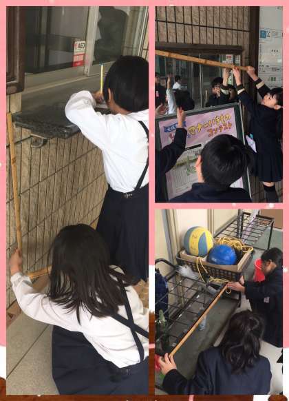 2年生が1mものさしを持ってうろうろしています。何をしているのでしょう?