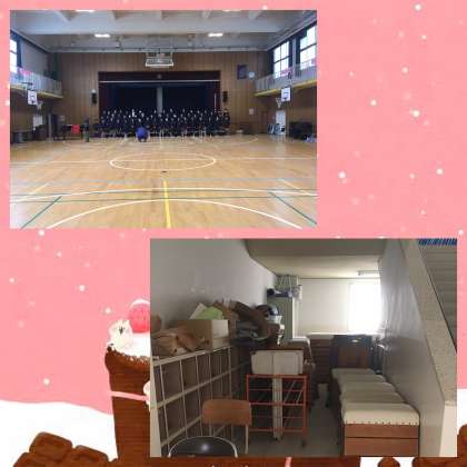 跳び箱やマットも片付けて,講堂もスッキリしました。