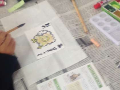 11月28日(金)3.4時間目、生涯学習ルームで絵手紙をしておられる講師の方々をお招きして、4年生が絵手紙を習いました。時間の終わりには、来年の干支の「ひつじ」が仕上がっていました。