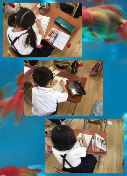 花や葉,つるなどをじっくり観察した後は,教室に戻って観察カードの記入です。