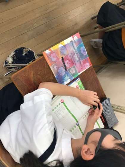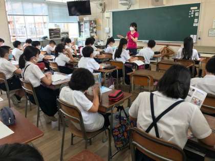 雨がやみ、セミの鳴き声の中、子どもたちは真剣に取り組んでいます。
