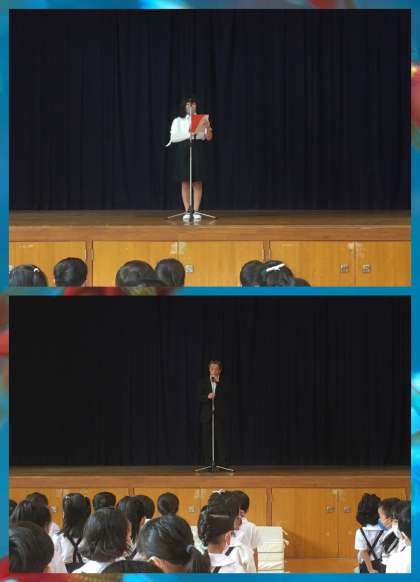 朝会では6年生の児童が,今年度への思いを発表してくれました。