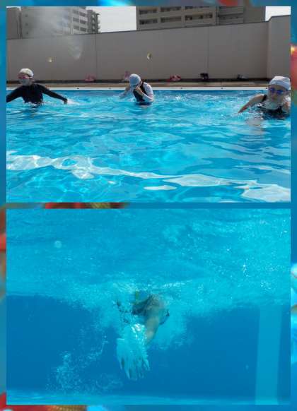今日は,天気も良く絶好のプール日和でした。